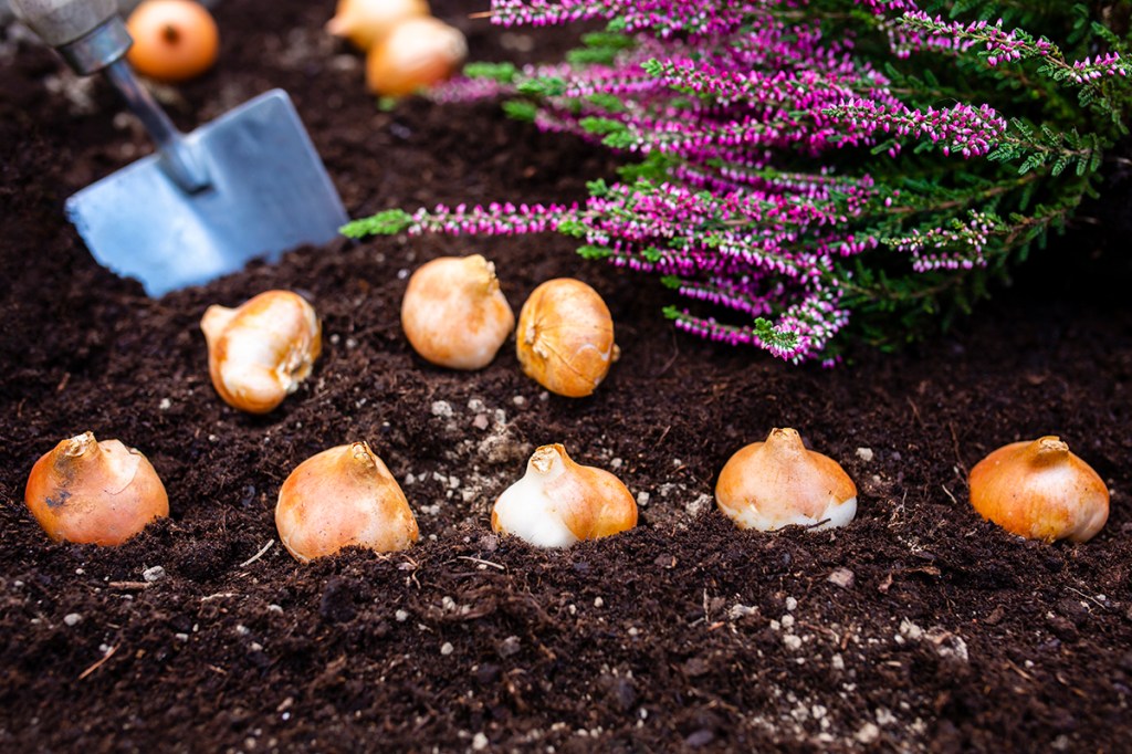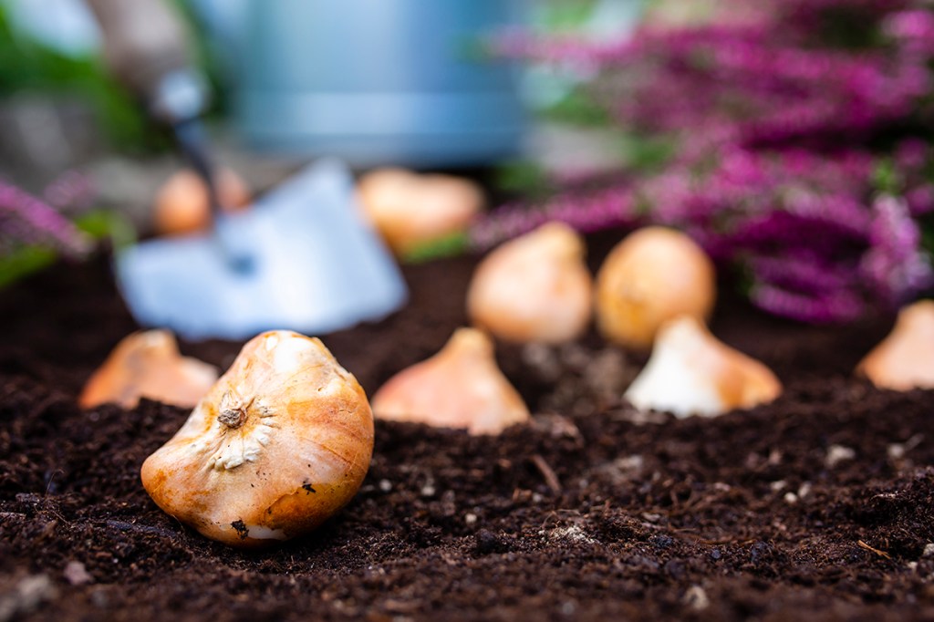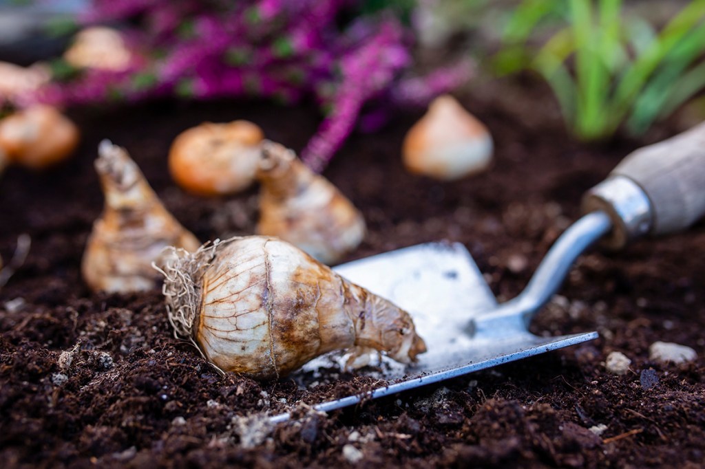 Jak w praktyce wygląda sadzenie cebulek? Trzeba usunąć chwasty, wykopać zagłębienie, wsypać żwirek lub drobne kamyki na dno (drenaż), dodać trochę ziemi ogrodniczej i wcisnąć w nią cebulkę. Przykryć ziemią i podlać, jeśli gleba jest bardzo sucha.
