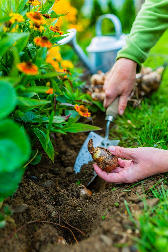 Cebulki można sadzić pojedynczo, albo zrobić jedno większe zagłębienie i włożyć ich kilka - wystarczy kierować się zasadą: im większa cebulka, tym dołek i odstęp miedzy nimi większy (głębokość powinna wynosić trzykrotność wysokości cebulki, a odstęp - trzykrotność jej średnicy).