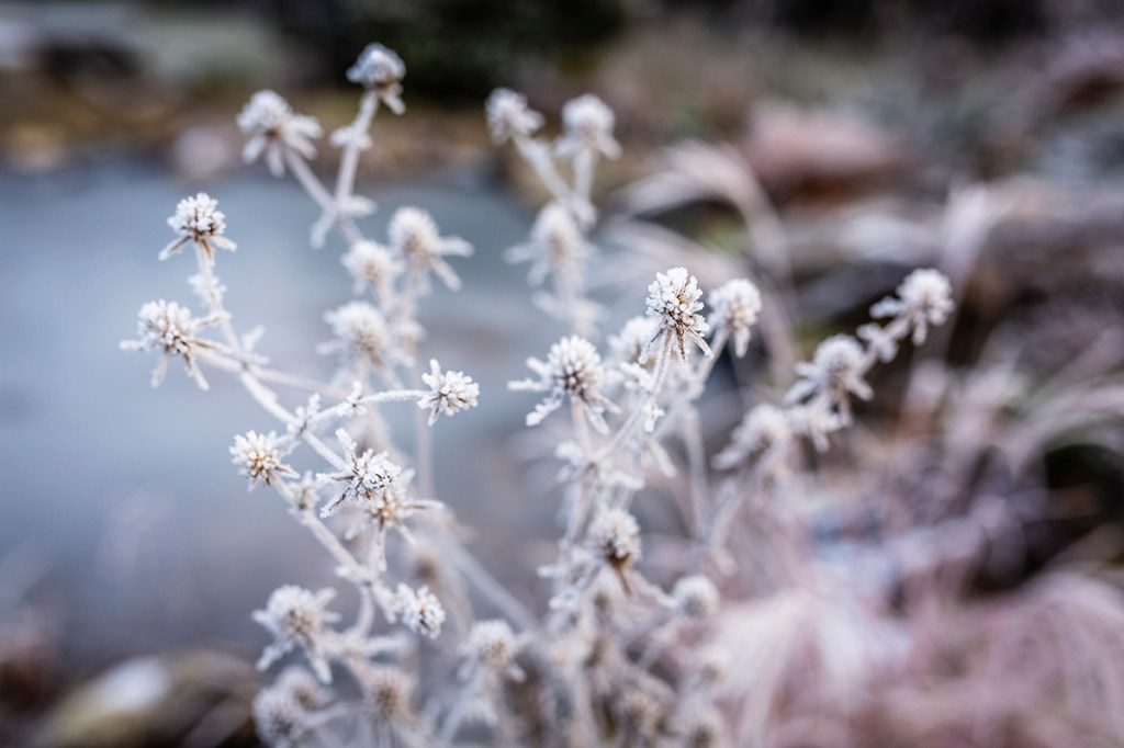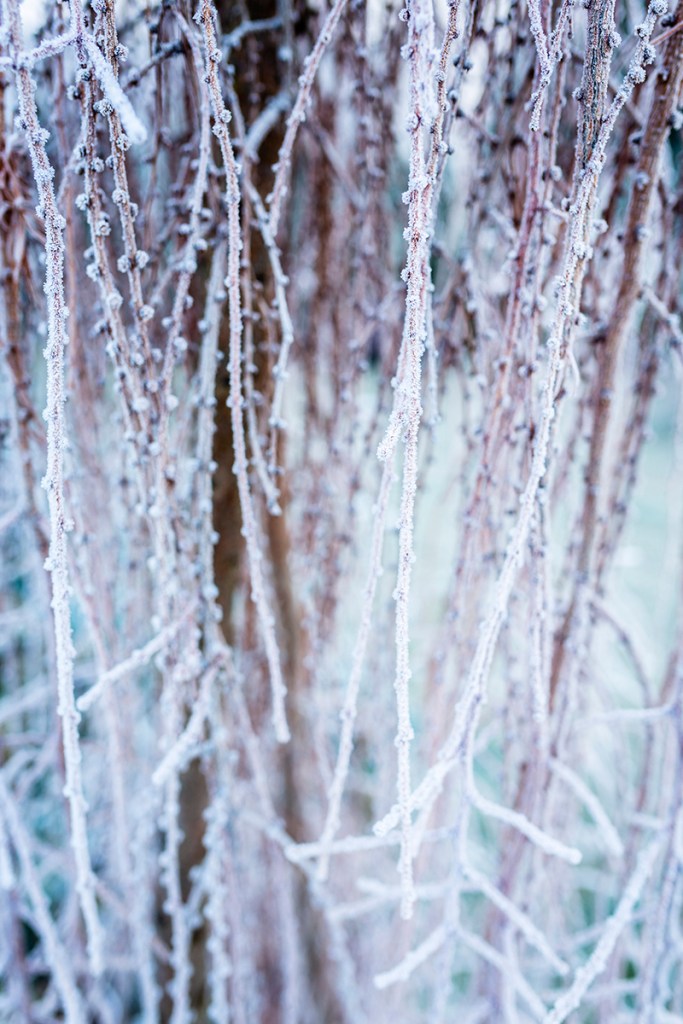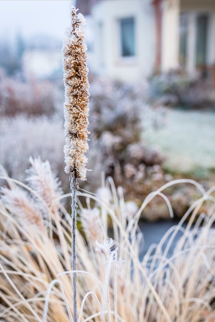 Pierwszy dzień zimy nie przyniósł z sobą śniegu, choć niskie temperatury sprawiły, że krajobraz zmienił się nie do poznania. Powstały z zamarzającej nocą rosy szron, pokrywający powierzchnię ziemi, kryształki lodu zebrane na brzegach liści i zaschniętych kwiatów, ukazują całe piękno natury. Szczególnie rano, błyszcząc i połyskując w słońcu, miniaturowe igiełki lodu zmieniają ogród w zaczarowaną krainę.