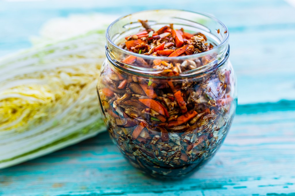 Zimą, gdy wybór świeżych warzyw jest ograniczony, rozwiązaniem dla uzupełnienia witamin są kiszone przetwory, np. koreańska kiszona kapusta – kimchi.